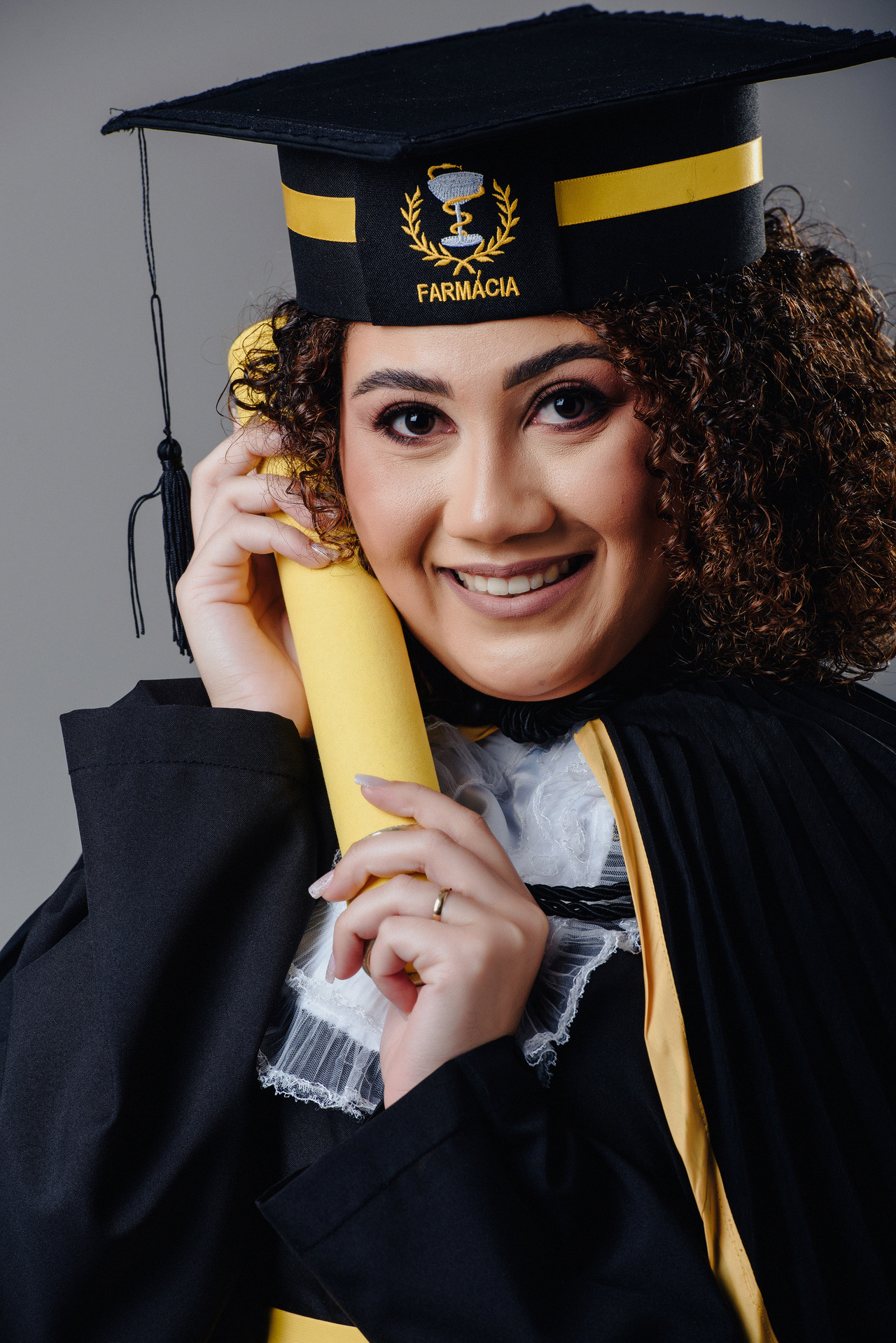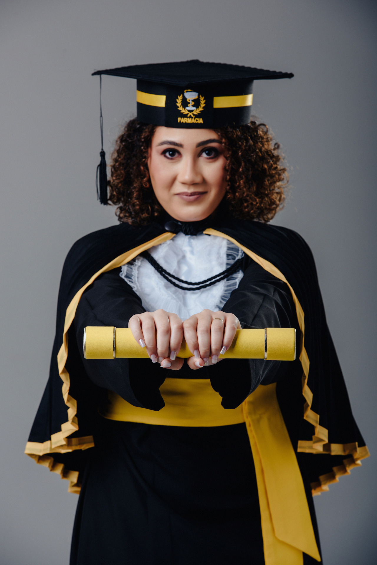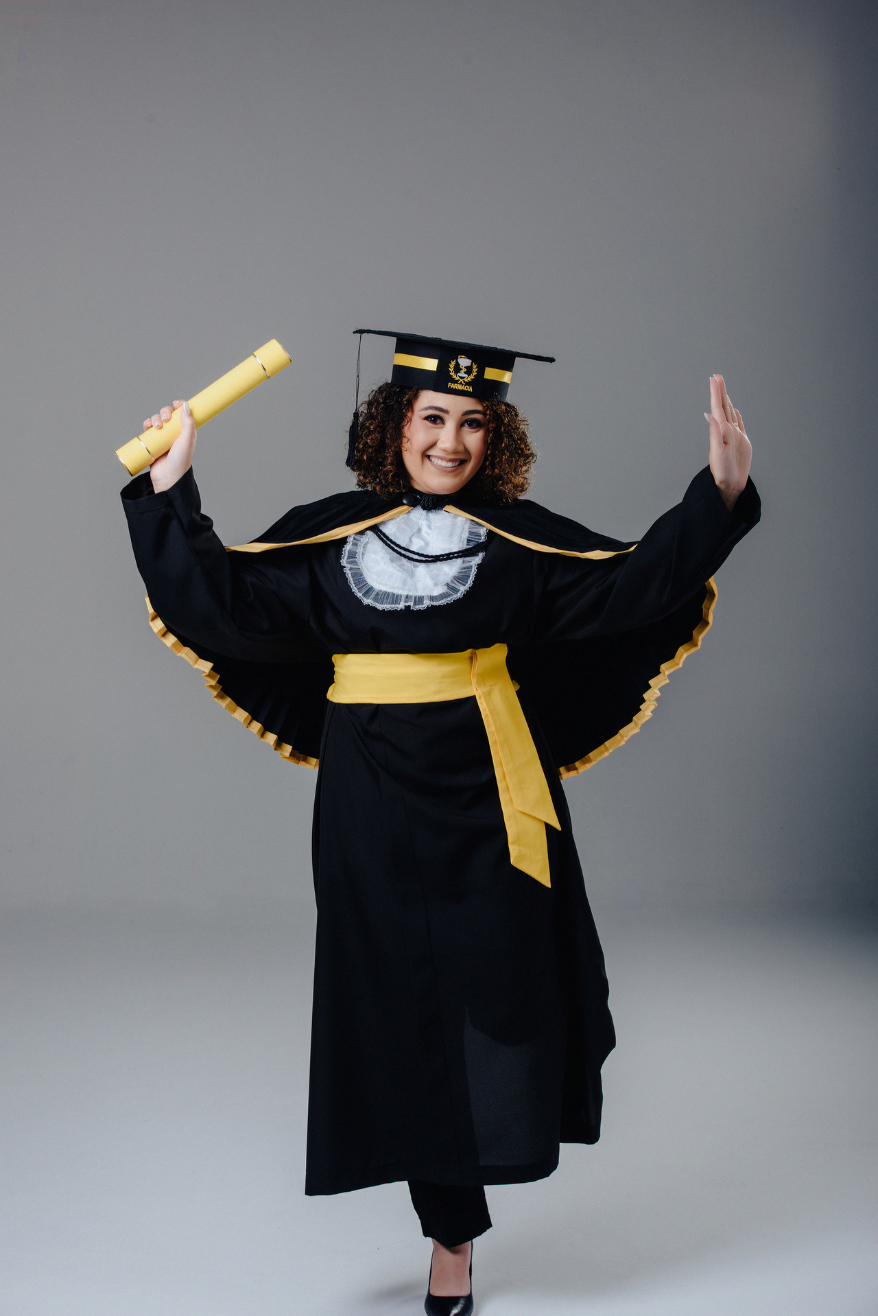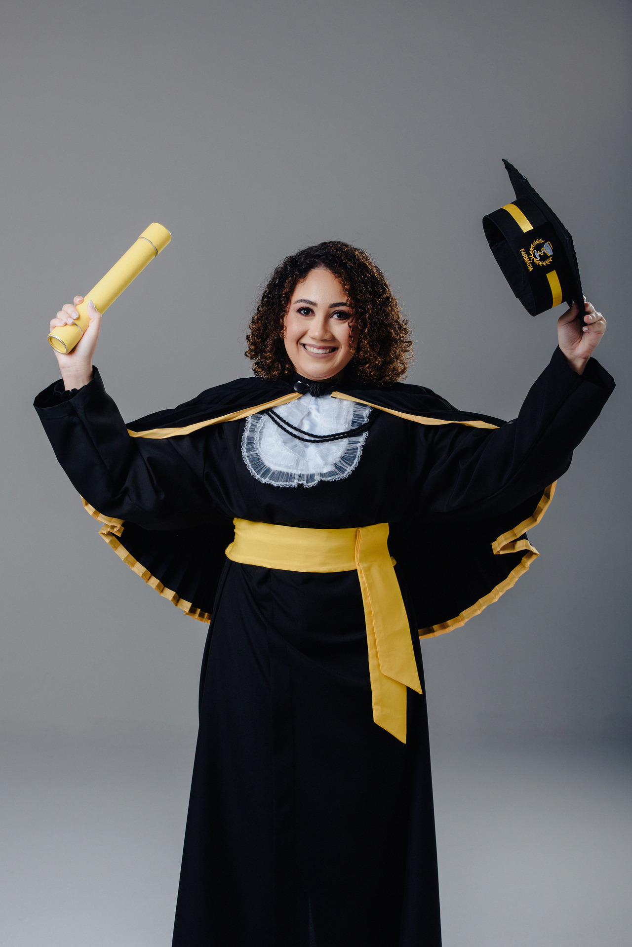 Esse foi um ensaio divertido e muito colorido que fizemos para o curso de Farmácia. Além das fotos protocolares, com familiares e nossa beca de luxo, criamos esses registros.