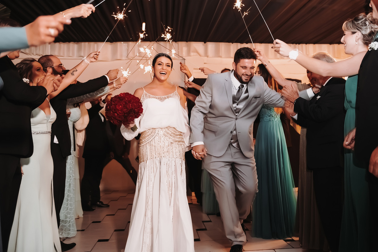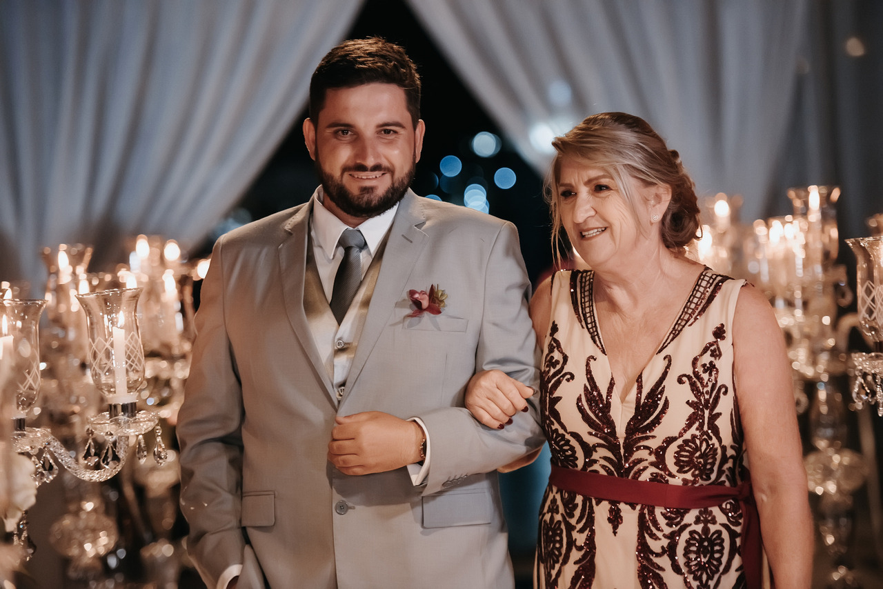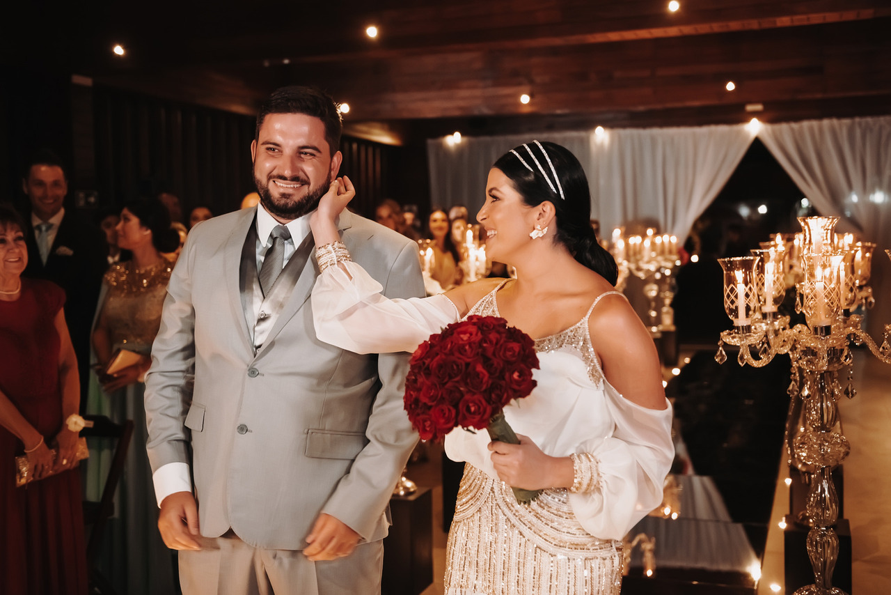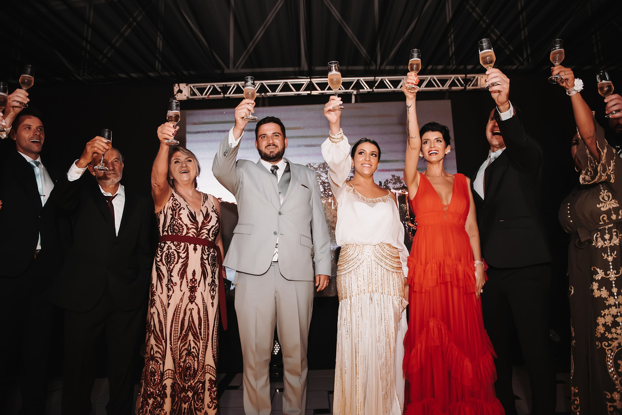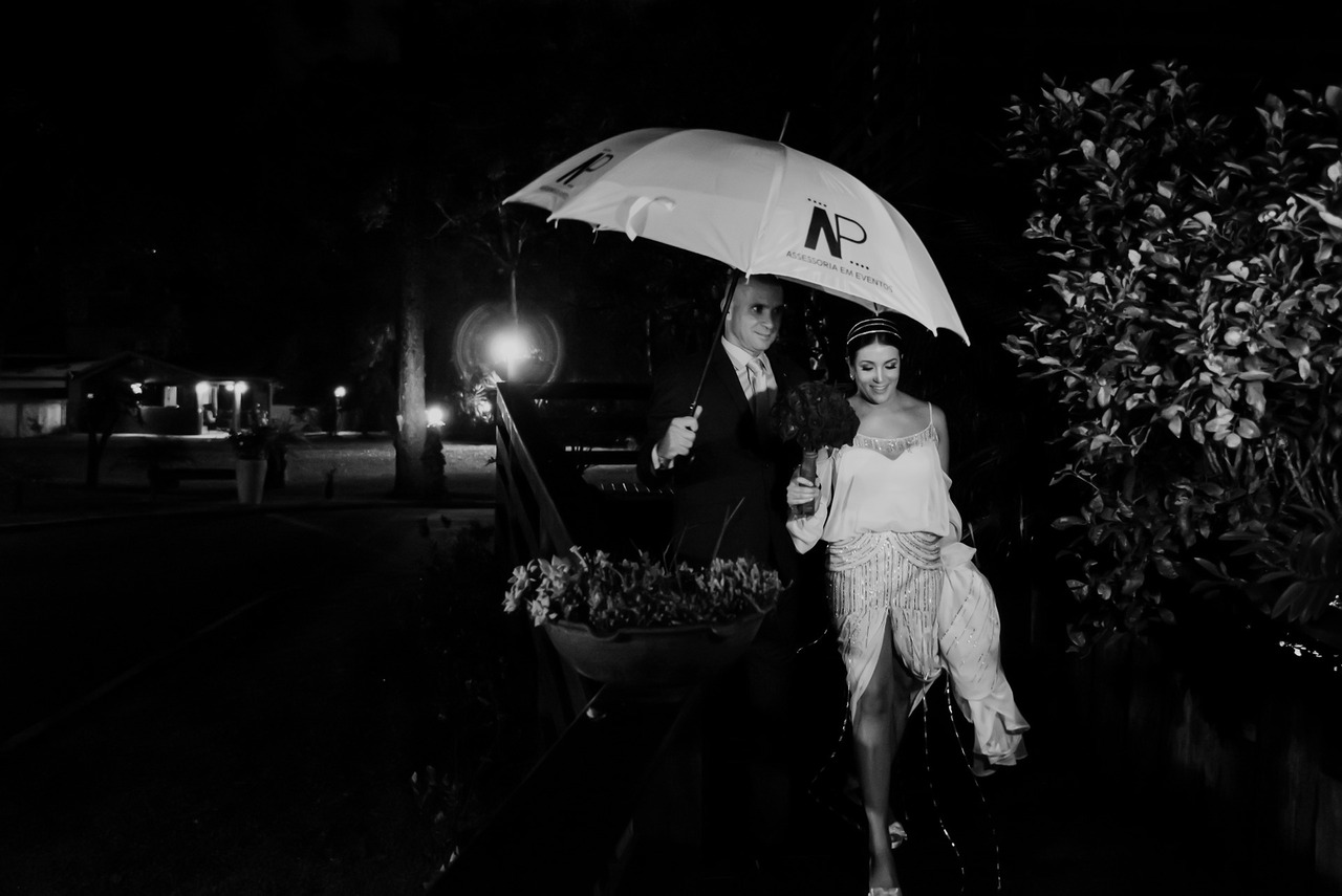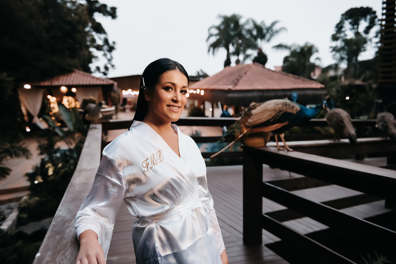 A espera pela realização do casamento foi grande e quando aconteceu, nem a chuva foi capaz de tirar o brilho e o sentimento de felicidade dos noivos, cercados dos familiares e dos amigos mais chegados, a cerimônia aconteceu num espaço lindo em São José dos Pinhais, onde pavões com suas caudas maravilhosas circularam livremente entre os convidados embelezando ainda mais a paisagem e encantando o momento!