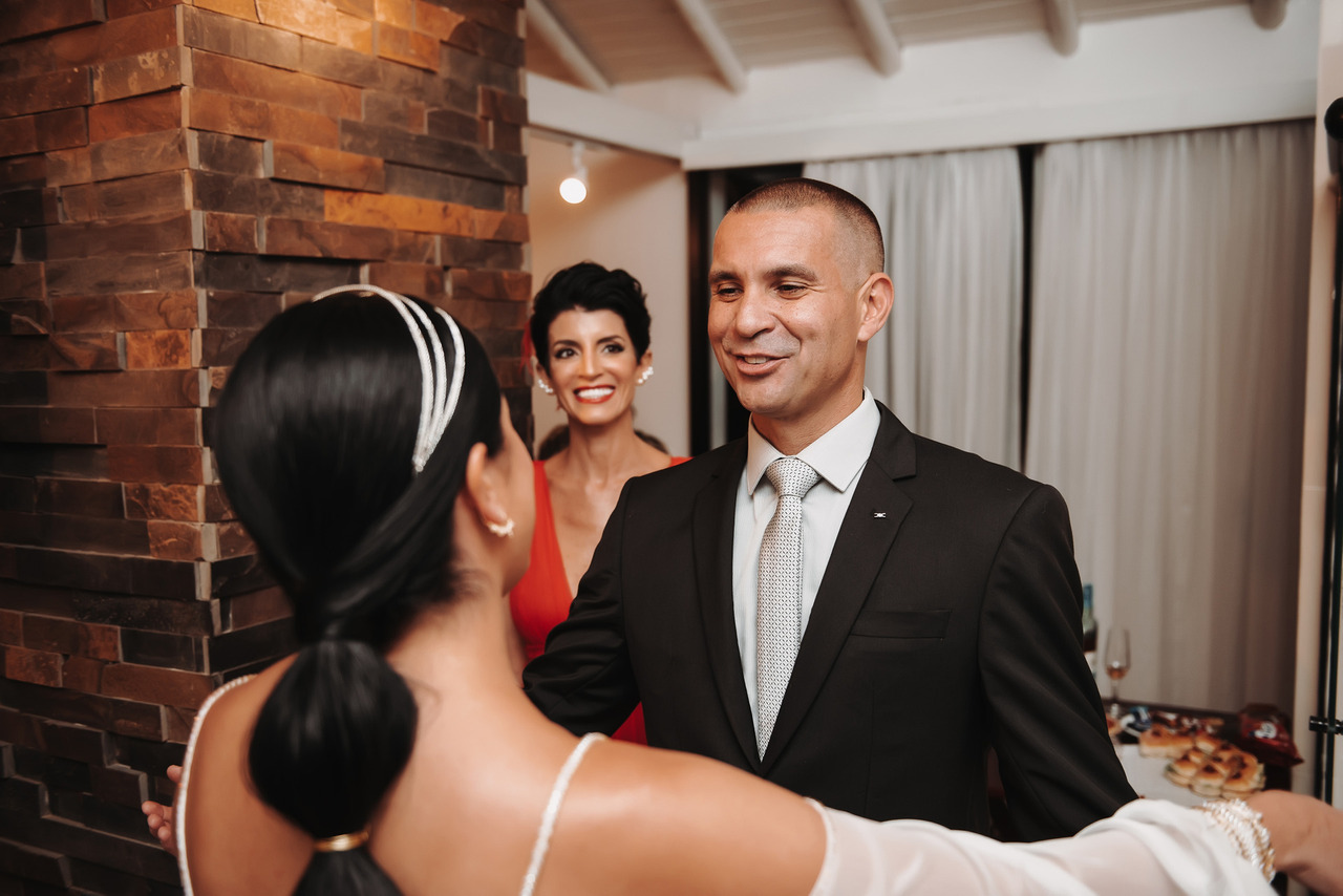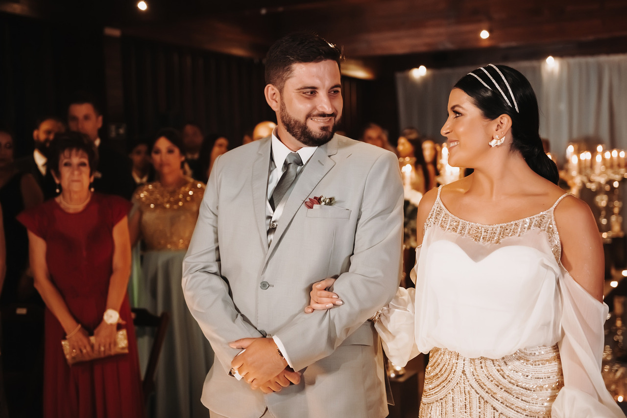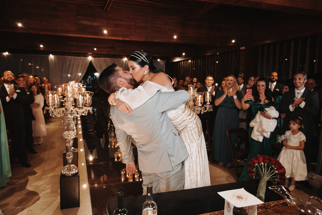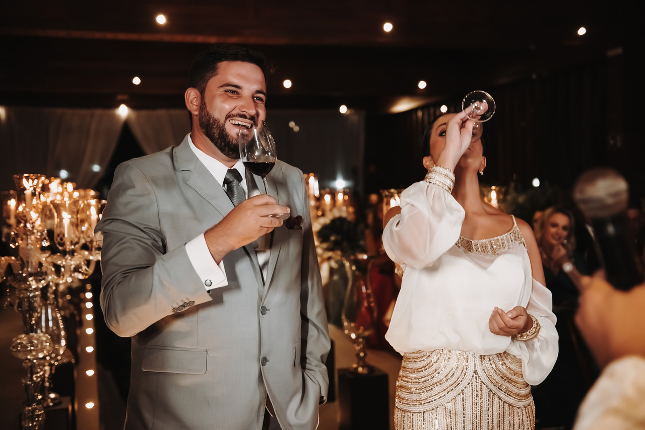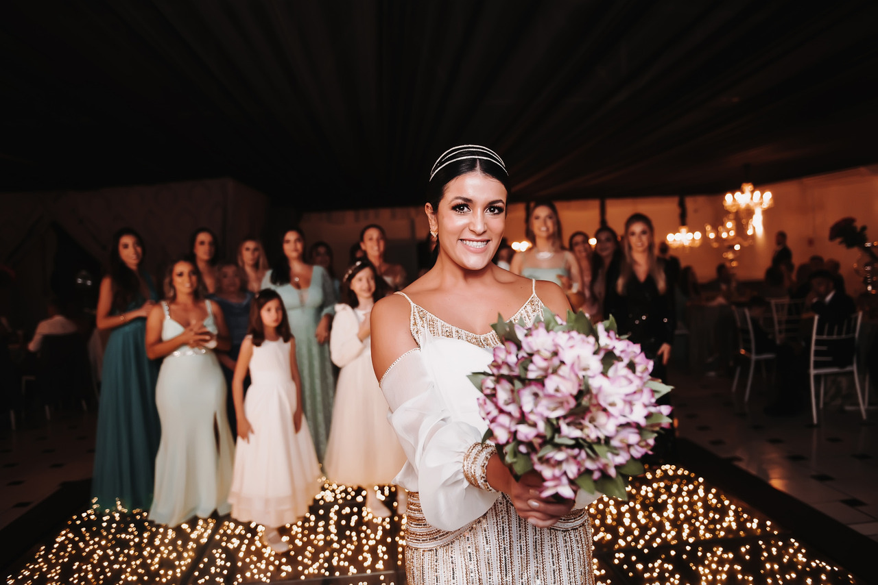A espera pela realização do casamento foi grande e quando aconteceu, nem a chuva foi capaz de tirar o brilho e o sentimento de felicidade dos noivos, cercados dos familiares e dos amigos mais chegados, a cerimônia aconteceu num espaço lindo em São José dos Pinhais, onde pavões com suas caudas maravilhosas circularam livremente entre os convidados embelezando ainda mais a paisagem e encantando o momento!