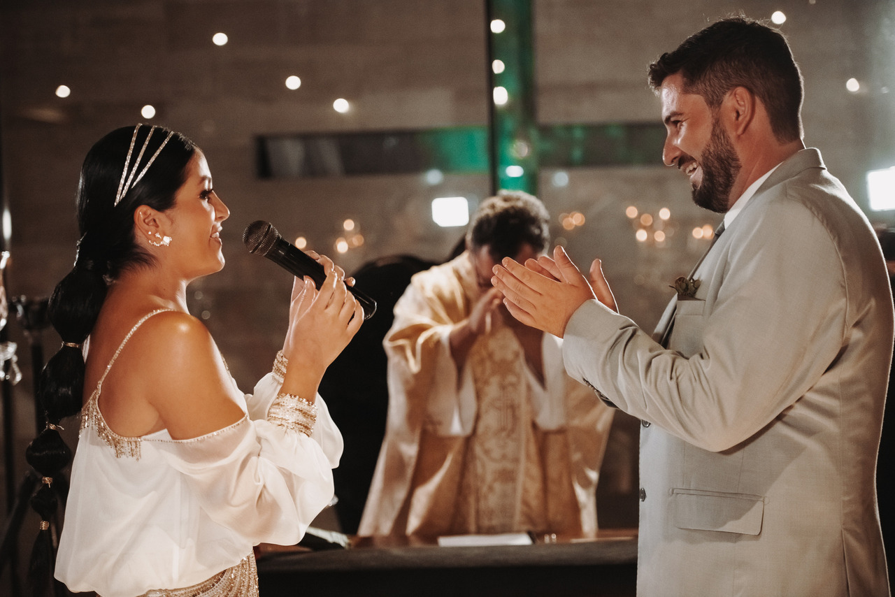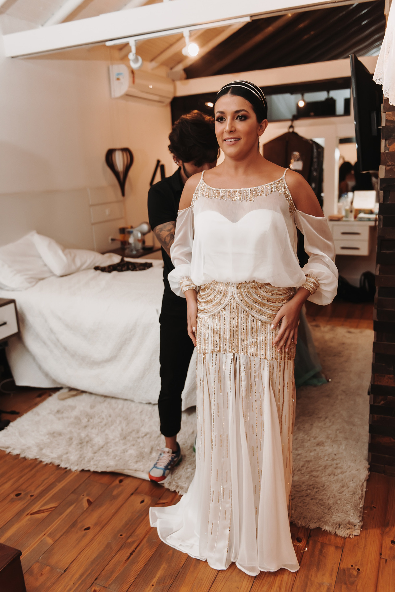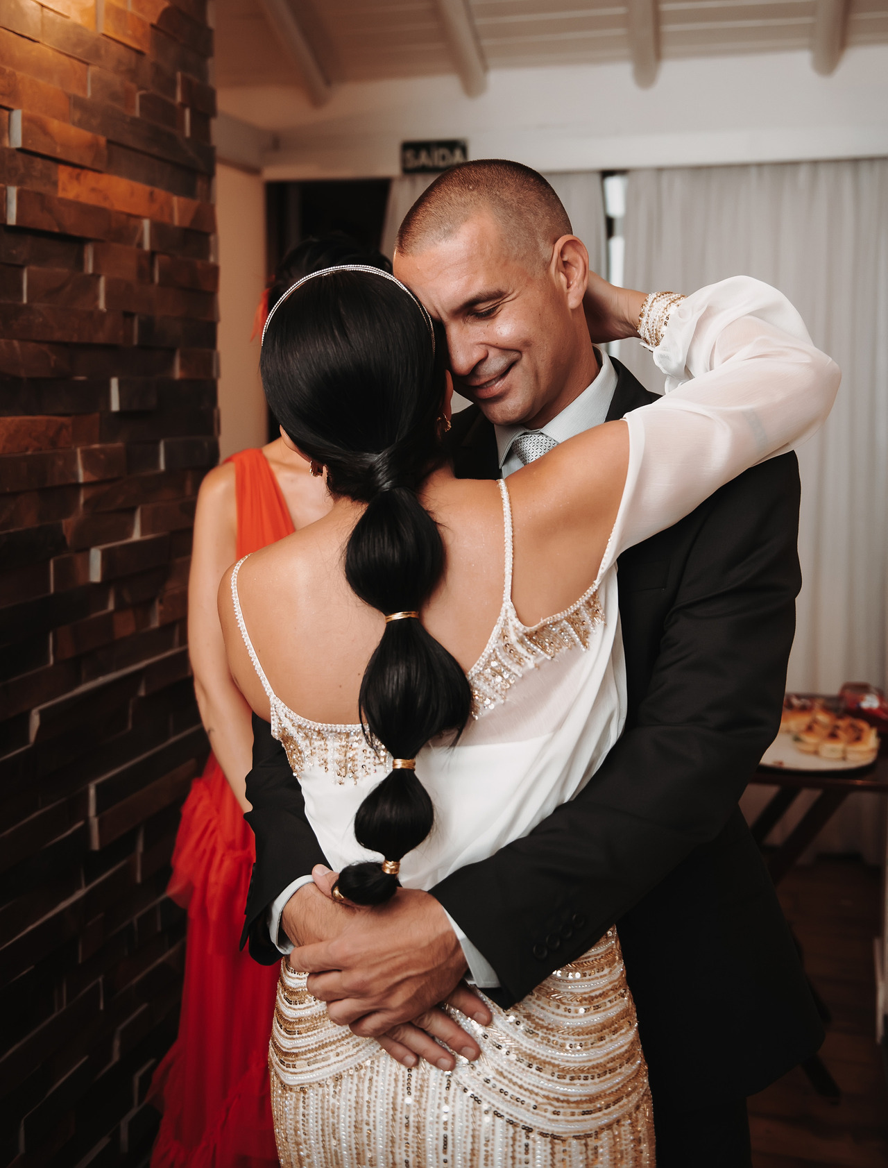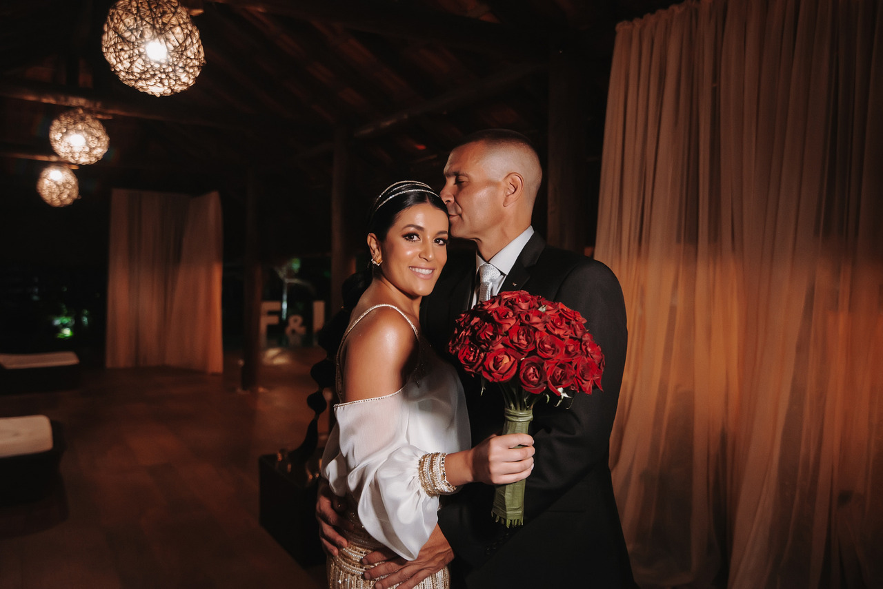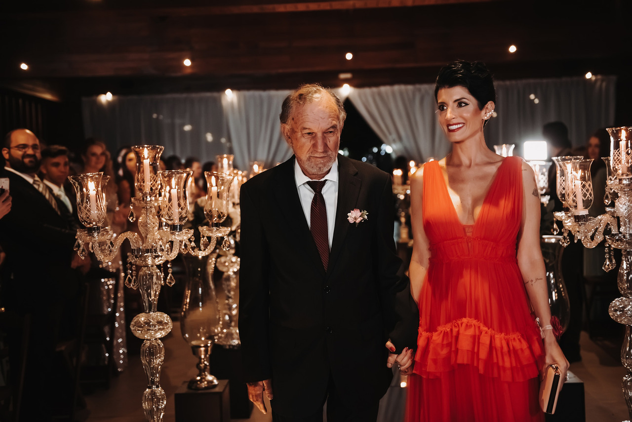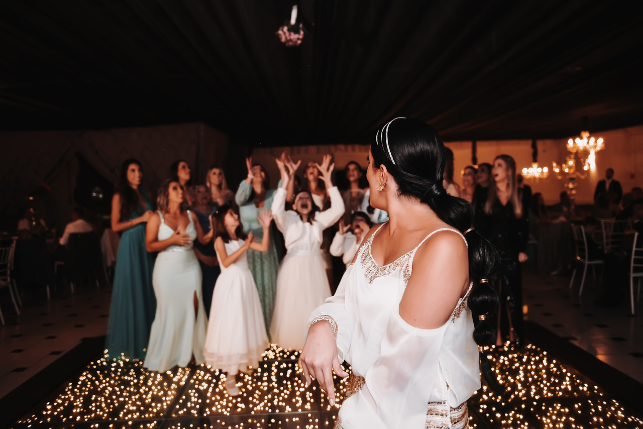 A espera pela realização do casamento foi grande e quando aconteceu, nem a chuva foi capaz de tirar o brilho e o sentimento de felicidade dos noivos, cercados dos familiares e dos amigos mais chegados, a cerimônia aconteceu num espaço lindo em São José dos Pinhais, onde pavões com suas caudas maravilhosas circularam livremente entre os convidados embelezando ainda mais a paisagem e encantando o momento!